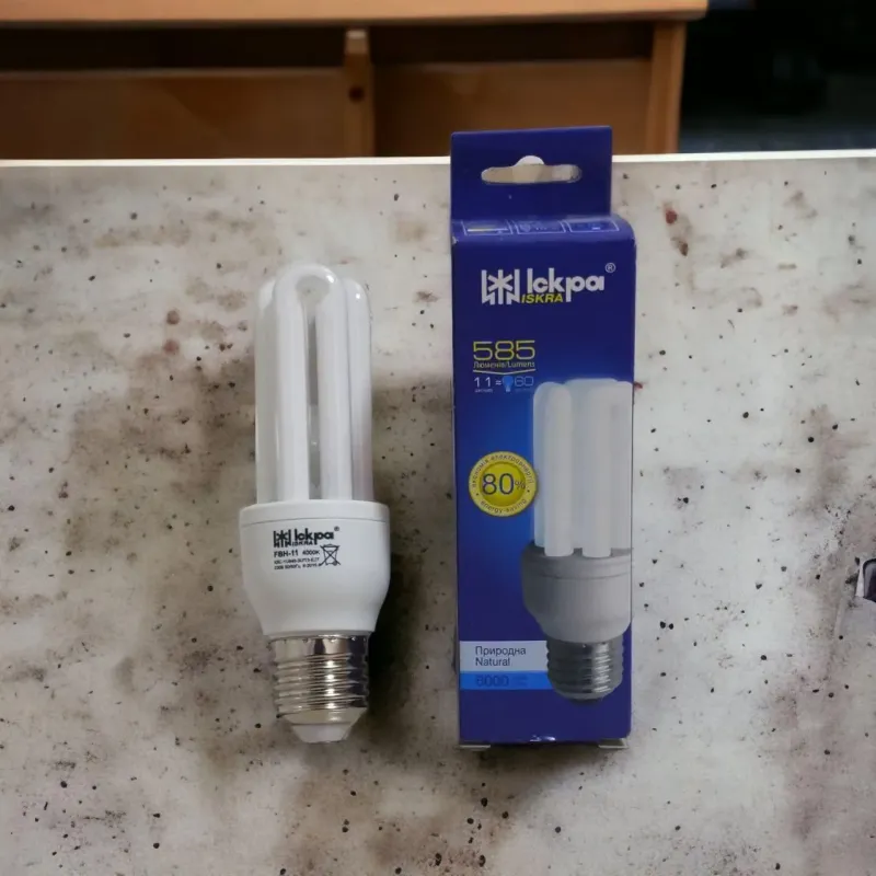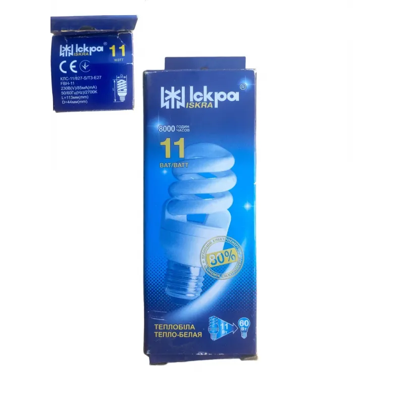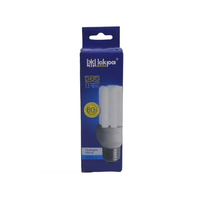 Лампа компактна люмінесцентна КЛЛ ІСКРА 3U 11W 3000К Е27 , енергоефективна лампа, економія електроенергії 80%, клас ефективності - А, призначені для загального та місцевого освітлення житлових, побутових, общественных та адміністративних приміщень. Аналог заміни лампи розжарювання потужністю 60 Вт.