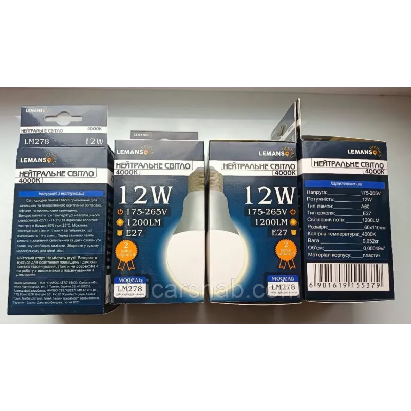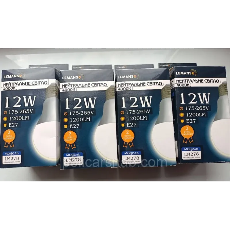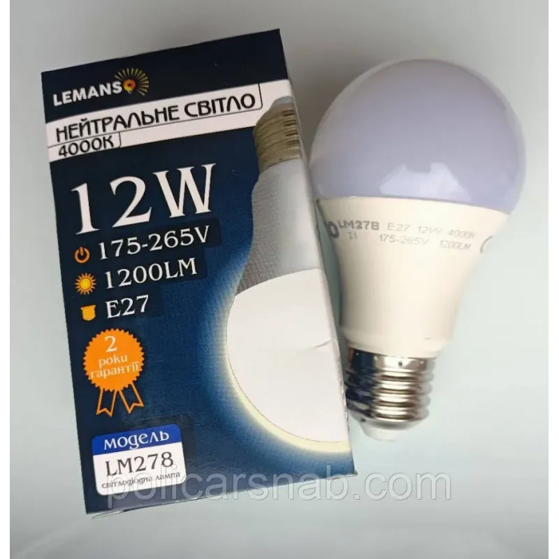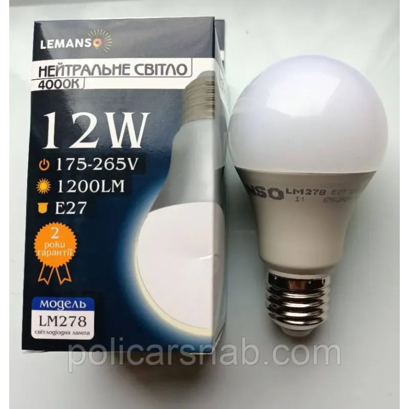 Світлодіодна лампа Lemanso ідеальний вибір для освітлення вашого дому, завдяки малій кількості споживаної енергії. Споживана потужність усього 12W, а випромінюваний водночас високий світловий потік становить 1200LM, освітлює ваше приміщення холодним білим світлом (4000К). Лампа має цоколь Е27, який є аналогічним до звичайної лампи розжарювання, отже, її можна застосовувати в усіх освітлювальних приладах із таким же патроном. Ця модель лампи обладнана світлодіодами, які рівномірно випромінюють розсіяне світло без мерехтіння і відблисків, що сприяє гарному самопочуттю, зокрема й зору. Лампа не реагує на перепади напруги та спалахує миттєво. Колба лампи має форму А60 як у звичайної лампи розжарювання. Така універсальна лампа може бути використана як для основного освітлення, так і для додаткового декоративного. LED-лампа застосовується для освітлення будь-яких типів приміщень. Така лампа слугуватиме вам довгі роки завдяки тривалому терміну експлуатації, згодом можливе лише невелике зниження яскравості.