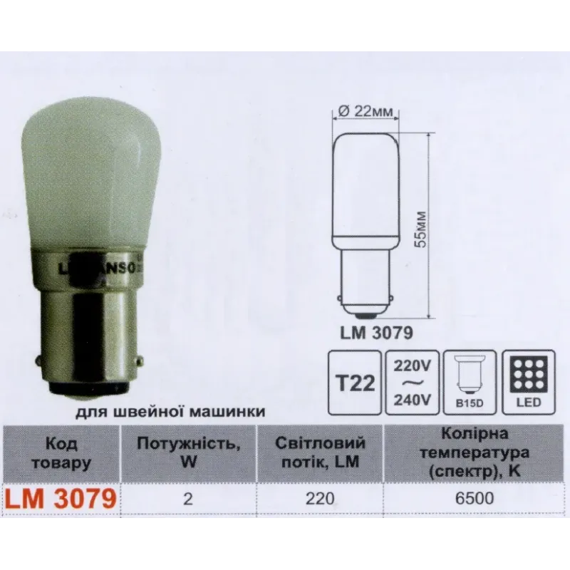 🛒 Шукаєте надійний товар? Ви можете купити Лампа Lemanso LED 0,8W T22 64LM B15D 6500K 230V прозора / LM3080 для швейної машинки в нашому інтернет-магазині Shtyrman. Гарантія якості та швидка доставка по всій Україні!