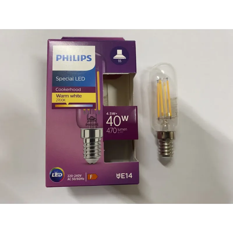 Світлодіодна лампа для витяжки Philips Special LED 220-240v 4.5w з теплим світлом і яскравістю як 40Вт розжарювання.Економний та довговічний аналог лампи розжарювання Philips 230v40w.