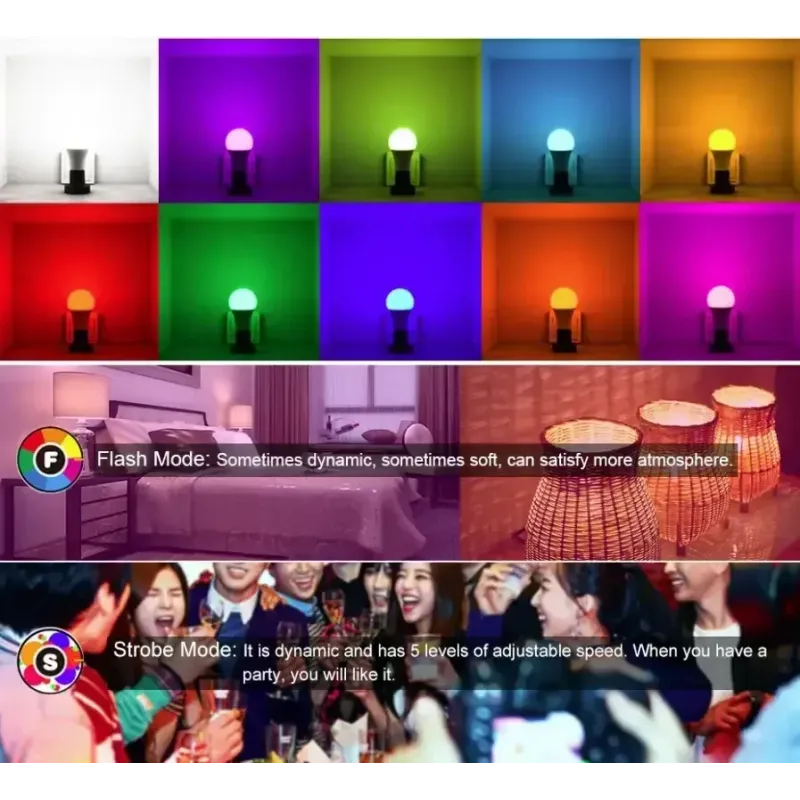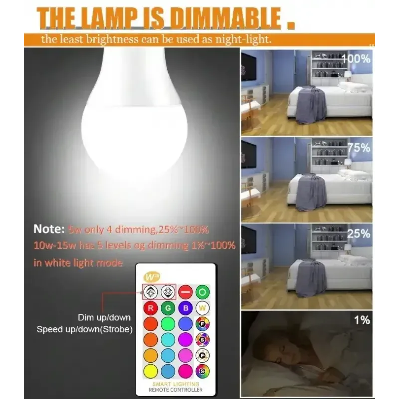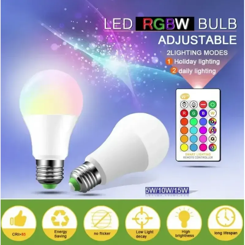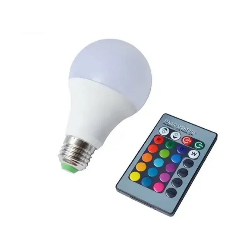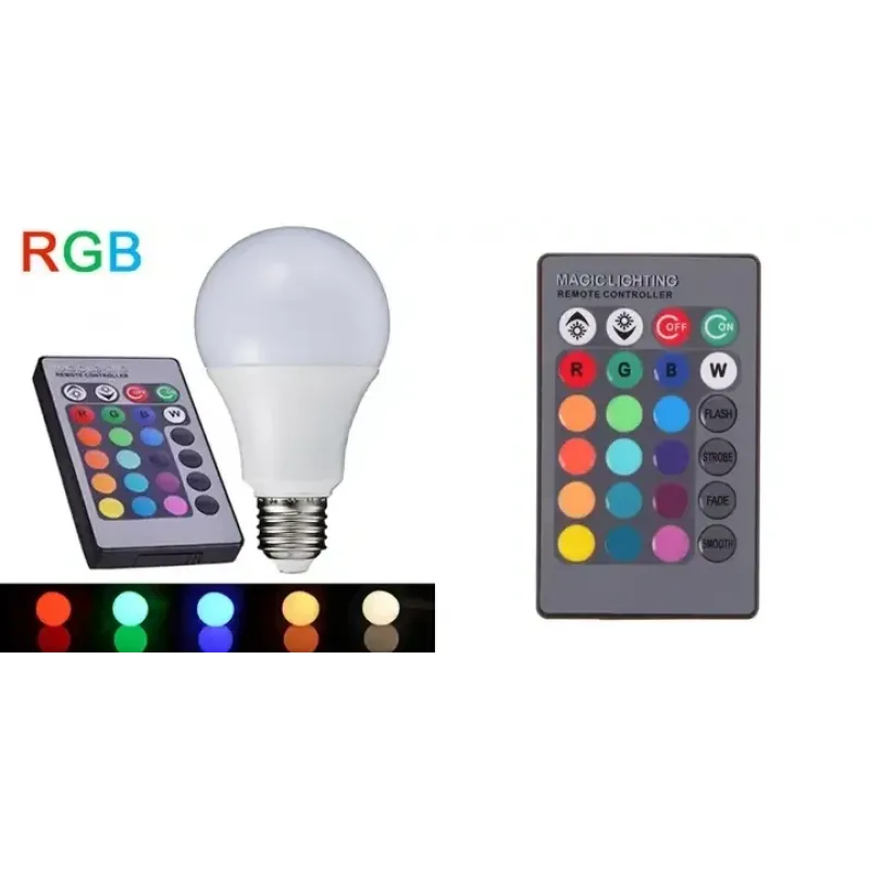 Лампа з пультом ДК RGB кольорова світлодіодна  — просте й оригінальне рішення у світловому оформленні інтер'єрів. Кольорові лампочки допоможуть створити незвичайну та неповторну підсвітку вітражів, кольорове заливання стін, підсвічування стельових ніш, арок, меблів, полиць,  картин і дзеркал. Мультиколірна підсвітка  дасть можливість оригінально виділити  архітектурні деталі інтер'єру, вітрини та прилавки, рекламні вивіски, об'ємні літери та логотипи в розважальній сфері, а також у сфері обслуговування й торгівлі, салонах. Готі Вашого бару, кафе чи ресторану зможуть самостійно вибрати освітлення за своїм столиком, що може стати Вашою родзинкою й залучити нових відвідувачів.
