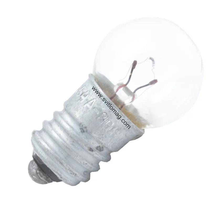 Лампа розжарювання МН 6-2,4 Е10 мініатюрна лампа з різьбовим цоколем E10, призначена для роботи при напрузі 6 В та силі струму 2,4 А, використовуються для освітлення шкал радіо- та електроприладів, світлової сигналізації, медичного обладнання, а також у спеціальних освітлювальних системах.
