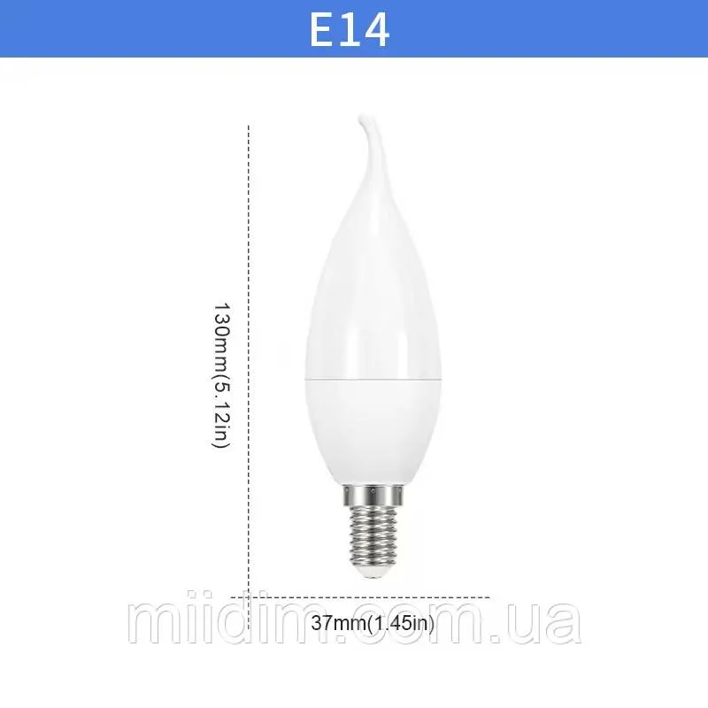 Лампа у формі свічки з тонким цоколем Е14 підійде як для настільних ламп, так і для потолочних світильників.