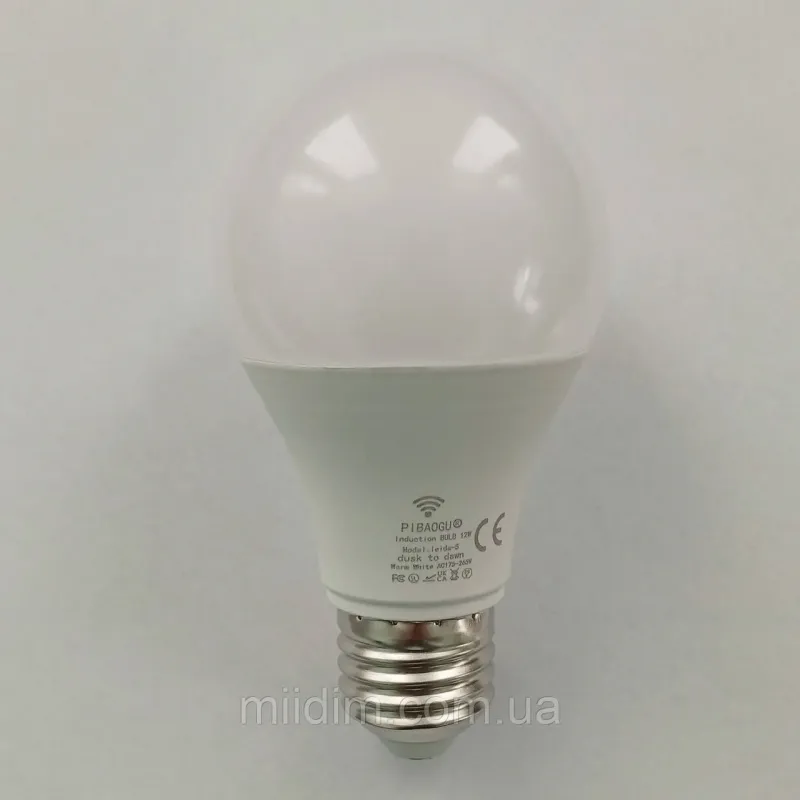 Лампа світлодіодна з датчиком руху 12w цоколь E27 тепле біле світло