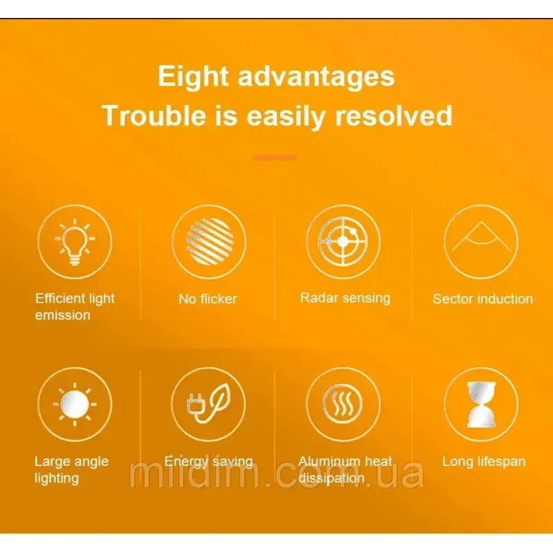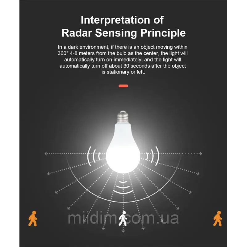 Коли ви перебуваєте в зоні дії датчика, лампа світить приблизно 30-40 секунд. Лампа може засвічуватись навіть якщо ви перебуваєте в іншій кімнаті, якщо між цими кімнатами тонкі стіни.