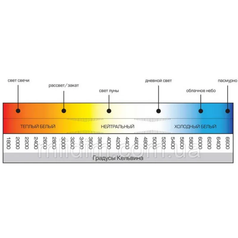 - Ознайомтесь з тим, який колір має світло з температурою 3000 кельвінів. Приклад є на фото в описі товару.