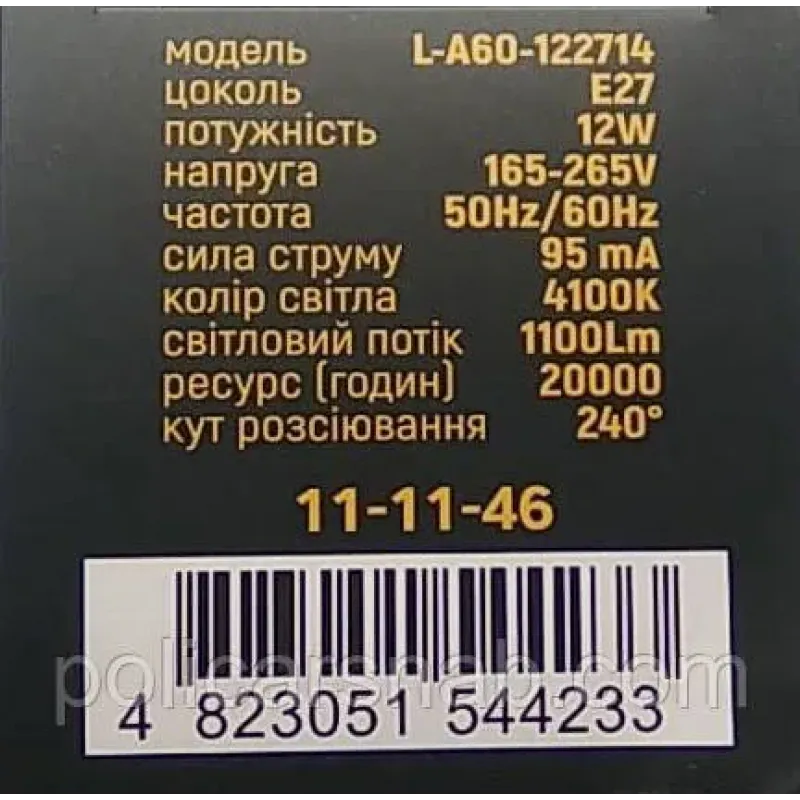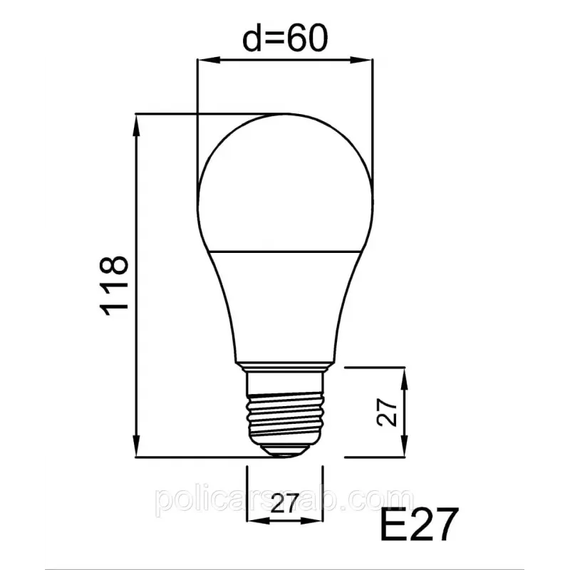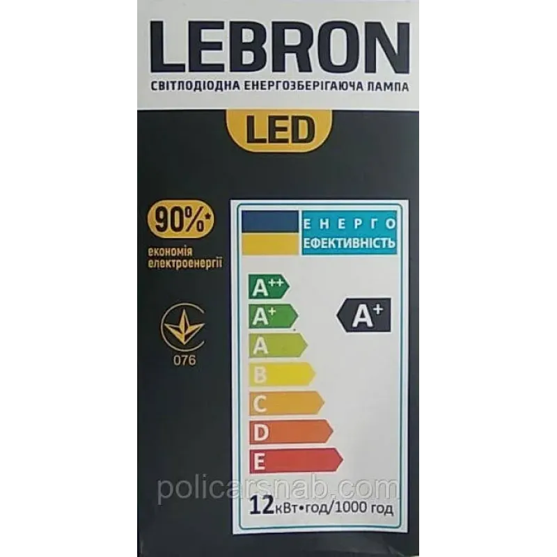 Лампа світлодіодна енергозберігаюча моделі A60 з цоколем E27 потужністю 12W торгової марки LEBRON LED