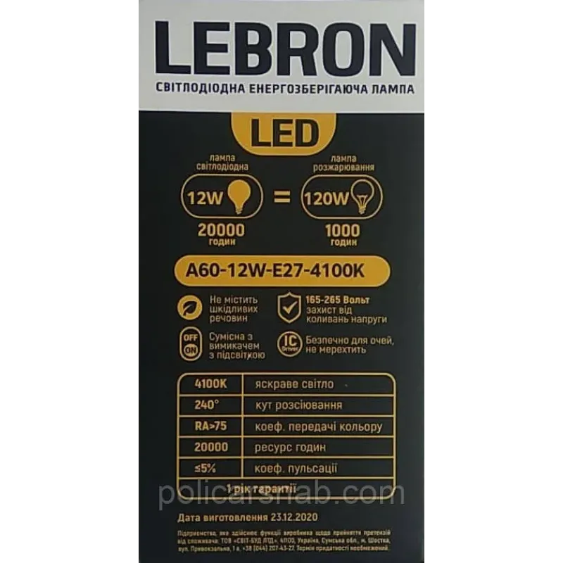 🛒 Шукаєте надійний товар? Ви можете купити Лампа світлодіодна енергозберігаюча моделі A60 з цоколем E27 потужністю 12W торгової марки LEBRON LED в нашому інтернет-магазині Shtyrman. Гарантія якості та швидка доставка по всій Україні!