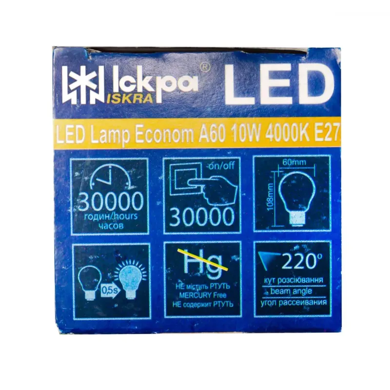 Лампа світлодіодна Iskra LED ECONOM 10W (аналог 60 Вт) цоколь E27 колба A55 4000K (біле світло) (10 шт)