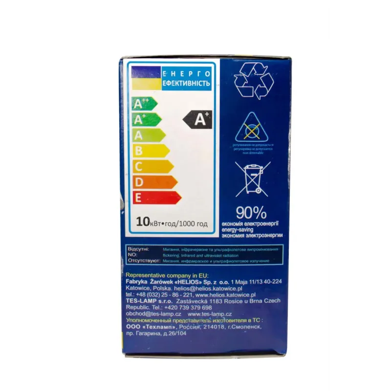 Енергетична світлодіодна лампа або LED лампа виконана у формі груші, має стандартний різьблення цоколь E27 і м'яке біле світло (4 000 кельвінів). Ця лампочка допоможе заощадити до 80 відсотків електроенергії, а також пропрацює як 30 аналогічних ламп розжарювання. LED лампи це одні з екологічно чистих джерел світла, на відміну від люмінесцентних енергозберігальних ламп у них не міститься ртуті і вони не потребують спеціальної утилізації.
