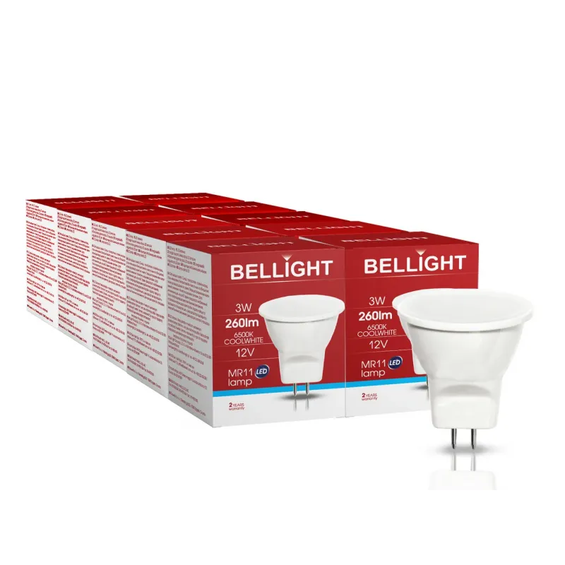 Світлодіодні лампи Bellight LED MR11 12V 3W 6500K низьковольтні використовують для освітлення житлових і виробничих приміщень, мають великий термін служби 25 000 годин , витримують часті включення / вимикання і значно зменшують витрати на електрику.