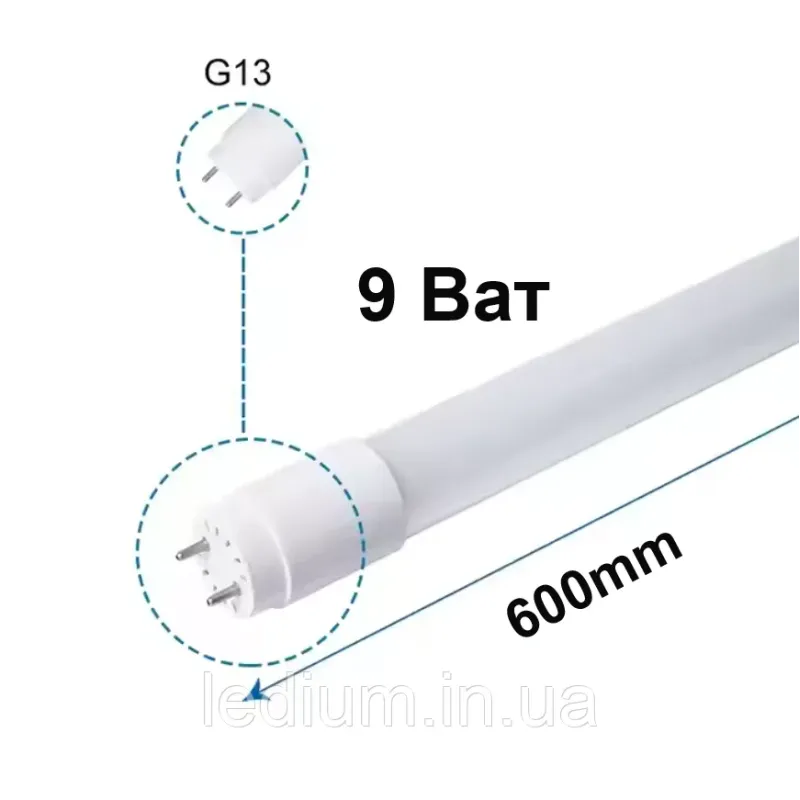 Це енергоефективна світлодіодна лампа Т8, що використовується для освітлення в офісах, магазинах, складах, промислових приміщеннях і т.д. Лампа має потужність 9 Ват і замінює традиційну люмінесцентну лампу потужністю 18 Ват. Колірна температура лампи становить 4100K , що відповідає світлу денного світла. Ця лампа має роз'єм G13, довжина лампи 60 см.