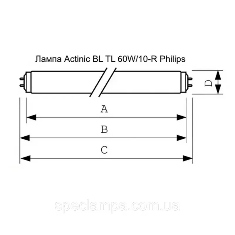| Характеристики лампи ультрафіолетовий BL TL 60W/10-R Actinic Philips |
