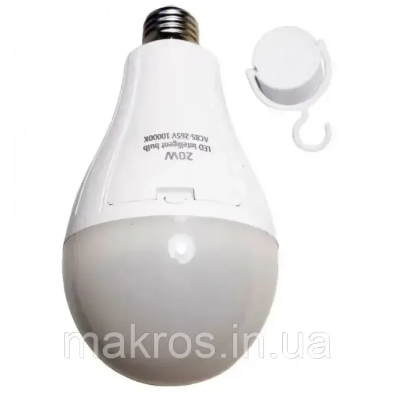 Технічні характеристики: Потужність 15-20 Вт. Час автономної роботи до 3 годин ( на аккумуляторах з комплекта). Повне заряджання за 3-4 години. Цоколь E27. Ресурс світлодіодів понад 25 000 годин. Корпус із пластику, розміри 160 x 80 мм. У комплекті є гачок для підвішування. Напруга живлення AC 85-265 V