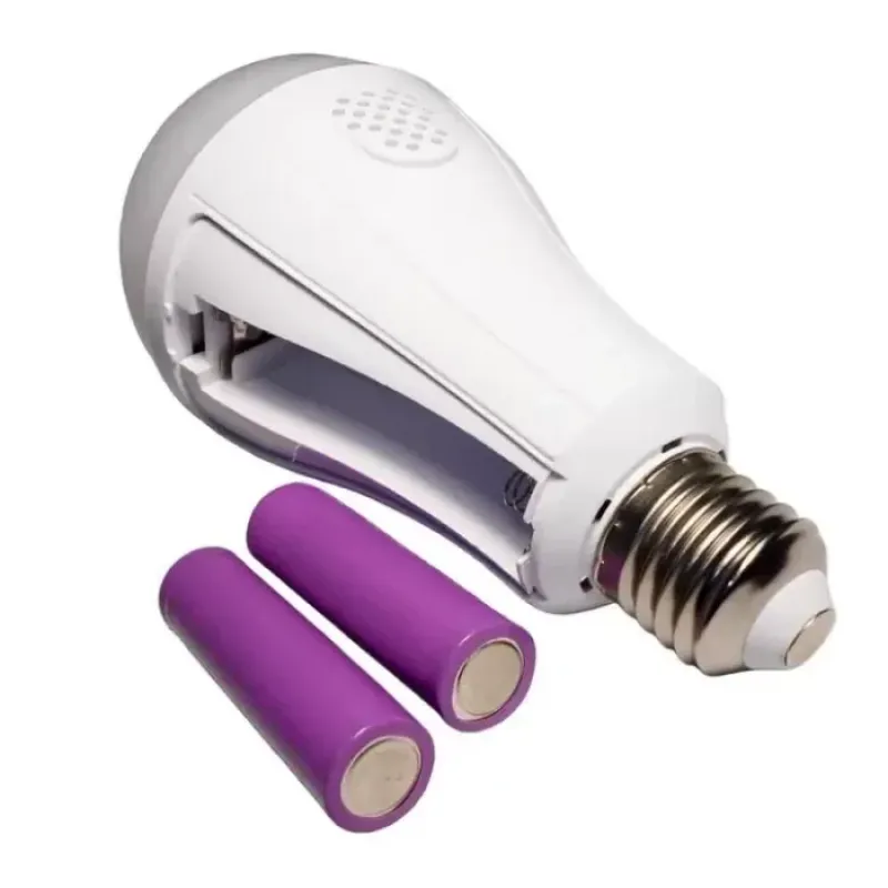 Лампочка E27 з акумулятором 2x18650 15W світлодіодна, 2 режими: від 220 В і автономноЛіхтарик-лампа на акумуляторі працює як звичайна лампочка, коли є електрика. Під час вимкнення електроенергії лампочка продовжує світити від вбудованих акумуляторів.