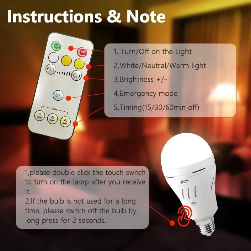 4. Світлодіодні лампочки – це електронні вироби. Якщо вони не використовуються протягом тривалого часу, батарея може вийти з ладу, що вплине на термін служби лампочки або призведе до того, що вона не загориться. Будь ласка, регулярно заряджайте лампочку та використовуйте її.