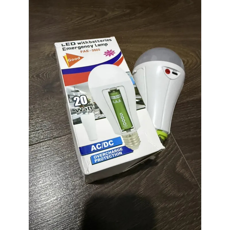 Перед замовленням ознайомтесь з описом💡 Аварійна LED лампа з акумулятором 20WНадійне освітлення при вимкненні електрики!Лампа працює як звичайна від мережі 220V, а при зникненні світла автоматично перемикається на інтегрований акумулятор і продовжує світити.🔋 Варіанти комплектації:450 грн - цоколь Е27, кемпінг гак з кнопкою у комплекті, вбудований АКБ (18650), 18W✅500 грн - з цоколем E27 + Type-C та 2 змінними АКБ великої ємності (фото 1) 20W ✅600 грн - з цоколем E27 + Type-C та 3 змінними АКБ великої ємності (фото 1) 20W ✅
