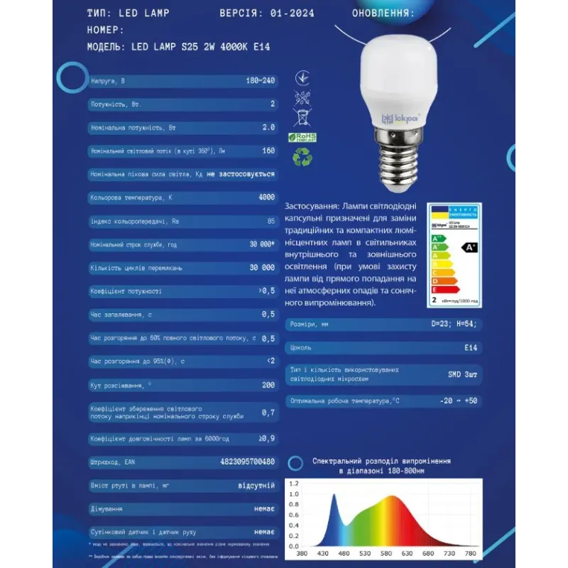 До складу цієї лампи не входить ртуть та інші шкідливі речовини. Термін придатності до використання необмежений. Не підлягає утилізації у вигляді побутових відходів.
