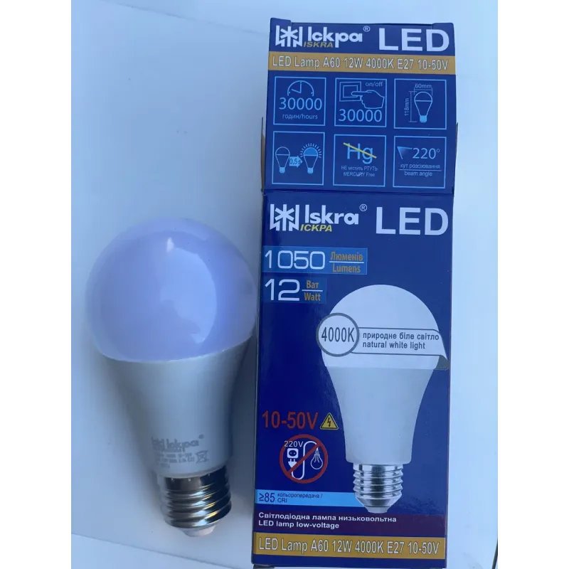 🛒 Шукаєте надійний товар? Ви можете купити LED Лампа Іскра A60 12W 4000K E27 10-50 V (Груша) | Нейтральний білий світ | Низьковольтна для автономних систем в нашому інтернет-магазині Shtyrman. Гарантія якості та швидка доставка по всій Україні!
