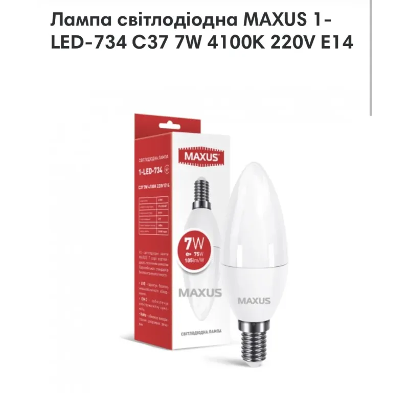 Світлодіодна лампа MAXUS 1-LED-776 – джерело світла нового покоління, яке відрізняється підвищеною енергоефективністю. Як і всі LED-лампи 7-ї серії MAXUS, ця модель пройшла сертифікацію на відповідність європейським стандартам безпеки та екологічності: