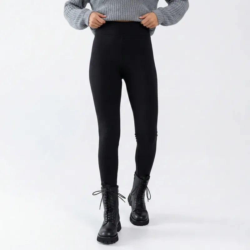 Зимові чорні трикотажні легінси на хутрі — це основа вашого теплого гардеробу. Універсальна модель, яка поєднує в собі елегантний вигляд брюк та неймовірний комфорт домашнього одягу. Зовнішня сторона — гладкий, щільний трикотаж, який не кошлатится і виглядає дорого. Внутрішня сторона утеплена густим, приємним до тіла штучним хутром, що надійно зігріває в морозні дні. Головна перевага цієї моделі — широкий еластичний пояс. Він виконує функцію корегуючої білизни: м'яко підтягує животик, моделює талію і при цьому не перетискає судини. Завдяки високій посадці спина завжди залишається в теплі. Широка розмірна сітка (від 42 до 58) дозволяє підібрати ідеальний варіант як для тендітних дівчат, так і для володарок пишних форм. Чорний колір візуально робить фігуру стрункішою та пасує до будь-якого взуття — від грубих черевиків до класичних чобіт. Характеристики: Тип: Легінси утеплені (Лосини) Матеріал верху: Щільний трикотаж Утеплювач: Штучне хутро (суцільне) Колір: Чорний (Black) Пояс: Широкий (ефект утяжки) Розміри: 42, 44, 46, 48, 50, 52, 54, 56, 58 Сезон: Зима / Холодна осінь.