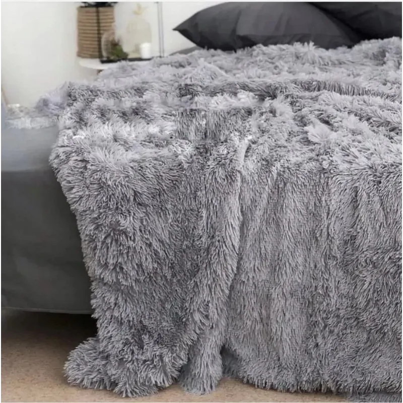 Меховий плед-покривало «Травка» 220×240 см (Сірий)