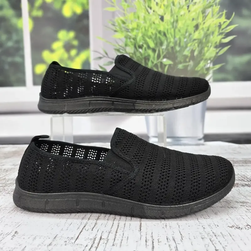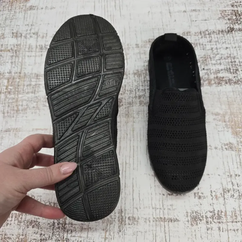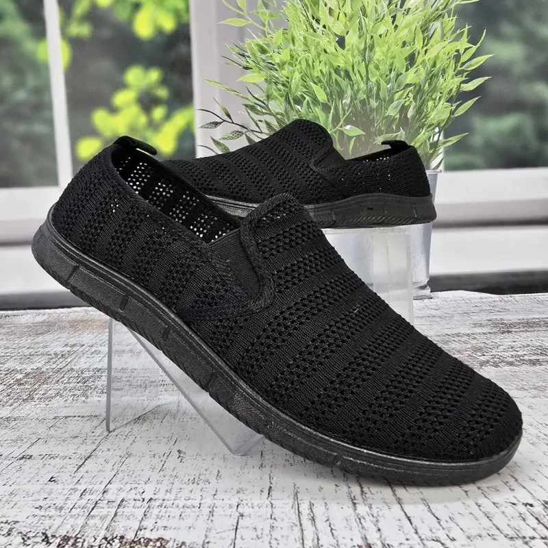 Шукаєте надзвичайно легке та комфортне взуття для спекотної погоди? Чоловічі базові мокасини (сліпони) від української фабрики Gipanis у практичному чорному кольорі — це ідеальний вибір на кожен день. Завдяки наскрізній сітці вони забезпечують чудову вентиляцію, а відсутність шнурків робить їх максимально зручними у використанні. Особливості та характеристики: Матеріал верху: Дихаюча текстильна сітка, що дозволяє стопам "дихати" і запобігає пітнінню. Підошва: Гнучка та легка (ПВХ), плоска, чудово адаптується до рухів стопи та забезпечує комфорт при тривалій ходьбі. Конструкція: Класичні мокасини з еластичними вставками (гумками) з боків для миттєвого взування. Модель йде без підкладки для максимальної легкості. Виробництво: Gipanis (Україна) — підтримуємо вітчизняного виробника! Розмірна сітка (довжина устілки): 41 розмір — 27,0 см 42 розмір — 27,7 см 43 розмір — 28,2 см 44 розмір — 29,0 см 45 розмір — 29,5 см