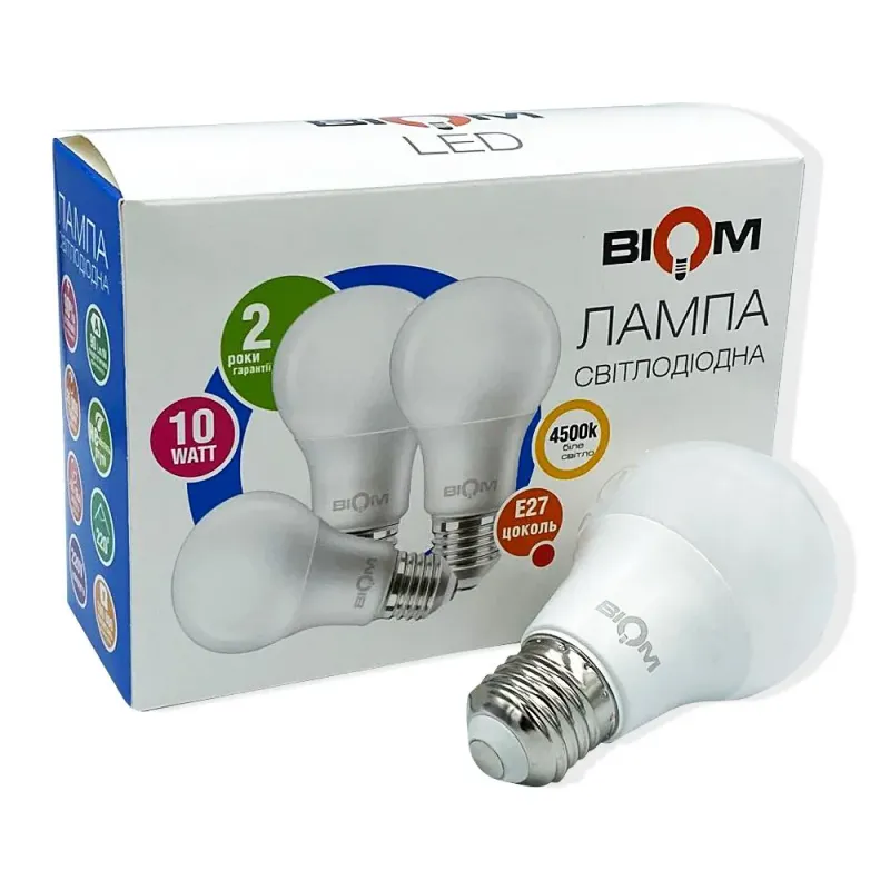 Світлодіодна LED лампа Biom BT-510/3 10W 4500К - це інноваційне рішення для освітлення вашого приміщення з ефективністю та економією енергії. Завдяки потужності 10Вт та еквівалентній потужності 90Вт ця LED лампа забезпечує яскраве освітлення, але при цьому споживає значно менше електроенергії, що зменшує витрати на оплату електроенергії. Тип світлодіодів SMD та температура світла 4500K роблять цю лампу ідеальним вибором для створення комфортного освітлення в приміщенні. Робоча напруга від 175 до 265В забезпечує стабільну роботу лампи в широкому діапазоні напруги, що робить її універсальним рішенням для будь-яких умов. Індекс передачі кольору гарантує високу якість освітлення з точним і натуральним відображенням кольорів, тоді як світлова віддача 90Lm/W та світловий потік 900Lm забезпечують достатню яскравість і інтенсивність освітлення в приміщенні. Колір світіння - нейтральний білий, що створює приємну та рівномірну атмосферу в приміщенні без надмірного підсвічування. Набір з 3 ламп є ідеальним вибором для оптових покупців та для використання в кількох приміщеннях одночасно. Це особливо зручно для організацій або домогосподарств, що потребують більше однієї лампи для освітлення великих приміщень або кількох кімнат. Такий набір забезпечує ефективне та економічне освітлення з однаковим комфортом і якістю світла.