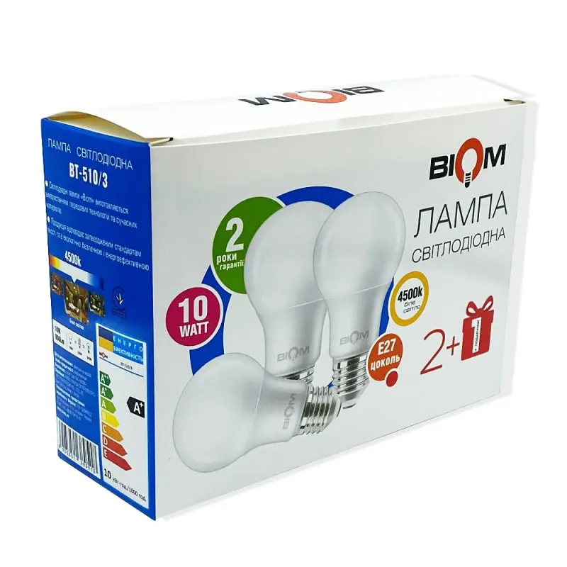 Мультипак "2+1" LED лампа Biom А60 10W E27 4500K BT-510/3