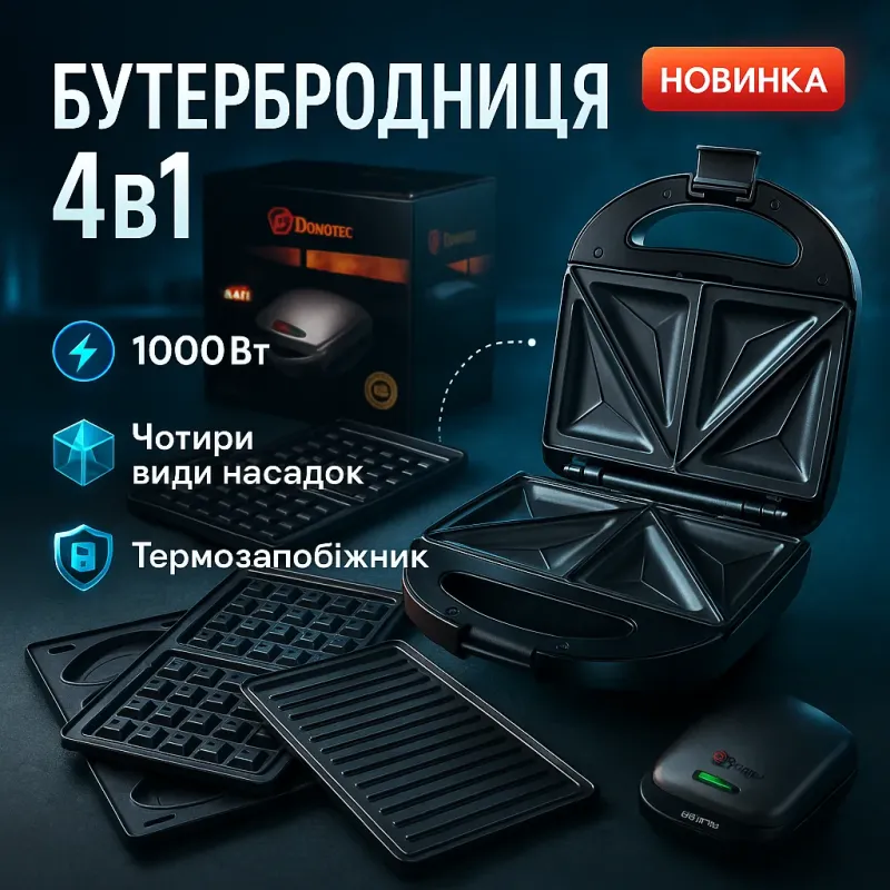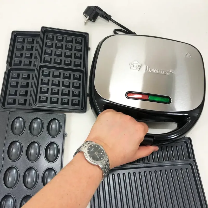 4 в 1 Гриль, бутербродница, вафельница, орешница Domotec ms 7704, 1000Вт со съемными формами: