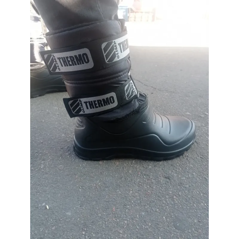 Шукаєте універсальне взуття, яке витримає бруд, сніг та мороз? Чоловічі зимові чоботи "Thermo Olimp" — це надійний захист для ваших ніг у найсуворіших умовах. Ця модель розроблена спеціально для активного використання: чи то зимова риболовля, полювання, робота на подвір'ї чи просто прогулянки в негоду. Нижня частина чобота (калоша) виготовлена з сучасного матеріалу — піни ЕВА (EVA). Вона на 100% водонепроникна, неймовірно легка та не пропускає холод від землі. Верхня частина виконана з щільного водовідштовхувального текстилю, утепленого зсередини. Особливістю моделі є дві широкі застібки на липучках з написом "THERMO", які дозволяють надійно зафіксувати взуття на нозі та регулювати об'єм халяви під будь-які штани. Чоботи дуже легкі, тому ноги в них не втомлюються навіть при тривалій ходьбі. Рельєфна підошва забезпечує стійкість на снігу та слизьких поверхнях. Характеристики: Тип взуття: Чоботи комбіновані / Сноубутси / Дутики Призначення: Риболовля, полювання, робота, повсякденне Сезон: Зима / Холодна осінь-весна Матеріал низу: Піна ЕВА (EVA) — легка та тепла Матеріал верху: Водовідштовхувальний текстиль Застібка: Дві липучки для регулювання об'єму Колір: Чорний Розміри: 41-46 Країна виробник: Україна