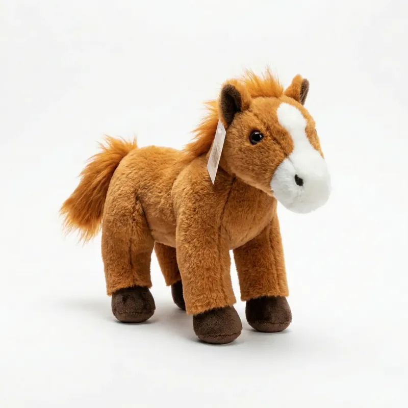 Мила плюшева конячка ніжного бежевого кольору стане чудовим подарунком для вашої малечі! Іграшка має дуже добрий та привітний вигляд, з білою плямкою на мордочці та пухнастою золотистою гривою і хвостиком. Вона виглядає наче казковий персонаж, що готовий до нових пригод разом зі своїм маленьким господарем. Іграшка виготовлена з якісного, гіпоалергенного плюшу, який надзвичайно приємний на дотик. Її хочеться гладити та обіймати. Щільна набивка дозволяє конячці впевнено стояти на ніжках, зберігаючи свою форму навіть після тривалих ігор. Реалістичні пластикові оченята надають їй живого погляду. Завдяки компактному розміру (близько 25 см), цей коник ідеально підходить для дитячих ручок. Дитина зможе брати улюблену іграшку в ліжко, в садочок або в дорогу. Це універсальний подарунок, який принесе радість дітям будь-якого віку. Характеристики: Тип іграшки: Тварини (Кінь/Поні) Матеріал: Плюш, текстиль, синтепон Колір: Бежевий / Світло-коричневий Розмір: Середній (приблизно 20-25 см) Вік: Від 3 років Стать: Унісекс Країна виробник: Китай