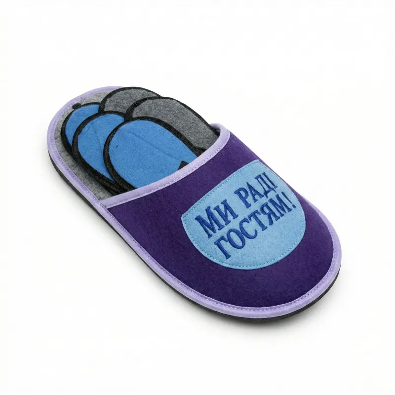 • Гігієнічність та комфорт: Капці виготовлені з м'якого, приємного на дотик матеріалу (повсть/текстиль), який легко пропускає повітря.