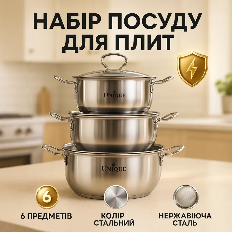 Набор кастрюль из нержавеющая стали с крышками UNIQUE UN-5074, набор посуды для электрических плит