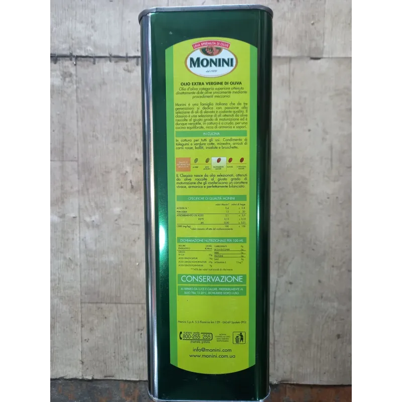 Оливкова олія Monini Classico Extra Virgin 5 л (Італія), класична олія холодного віджиму в каністрі