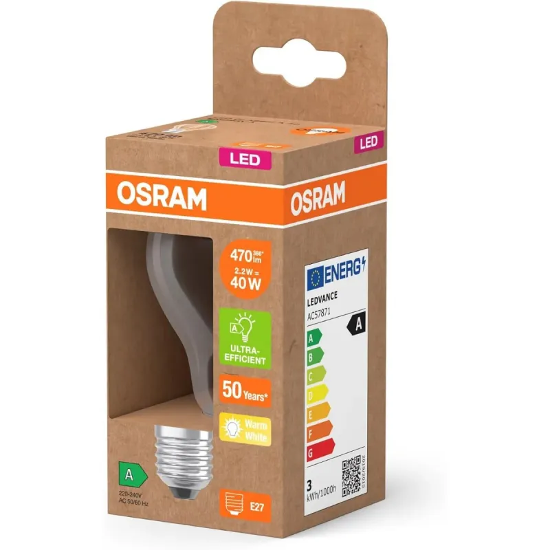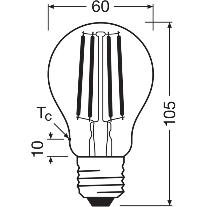 OSRAM LED Classic A60 2.2W, заміна 40W, світлодіодна лампа E27 з філаментною ниткою, 470 лм, яскраво-біла