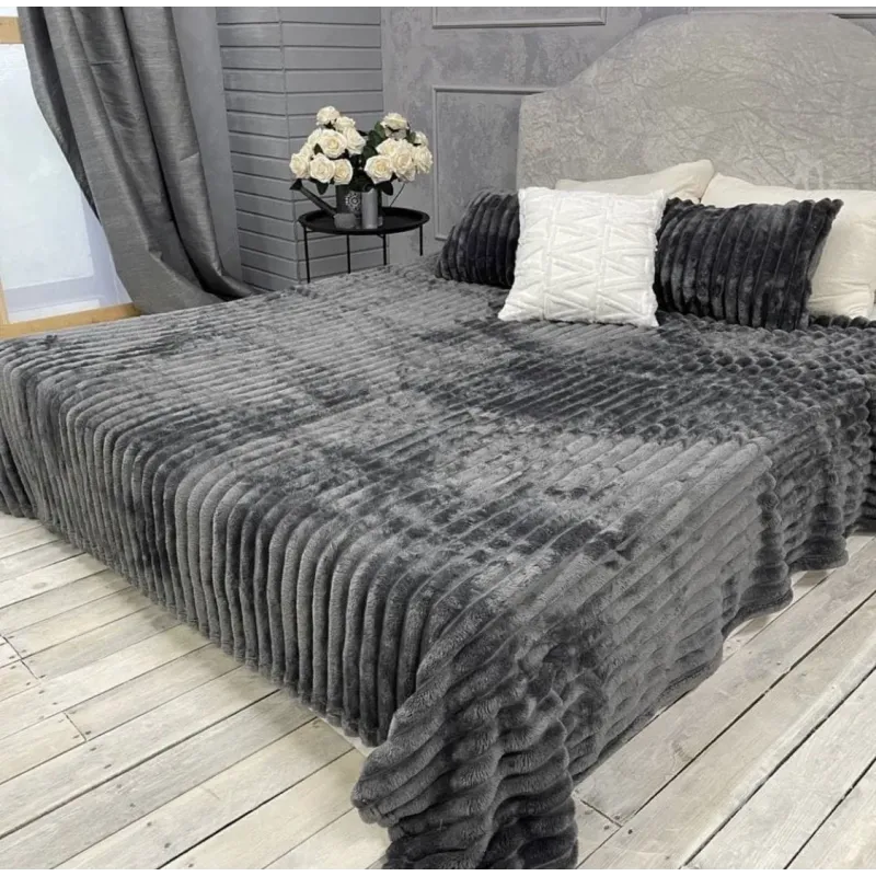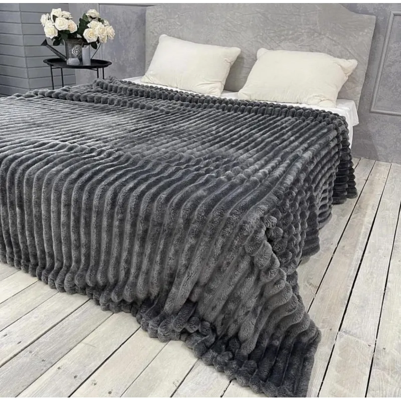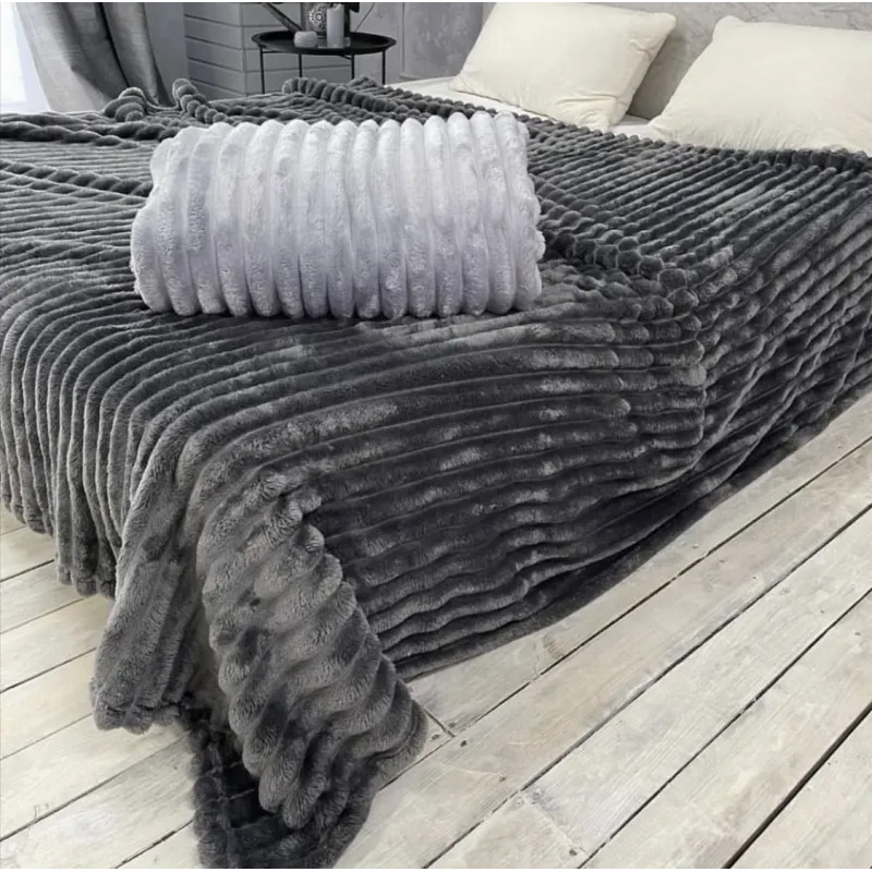 Плед Шарпей м'яка полоска Євро Розміру 200-220см колір Темно-сірий