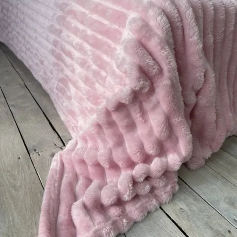 Плед велсофт м'яка полоска Євро Розміру 200-220см колір Рожевий