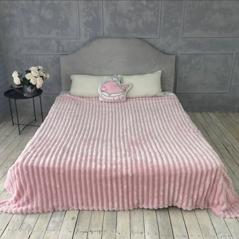 Плед велсофт м'яка полоска Євро Розміру 200-220см колір Рожевий