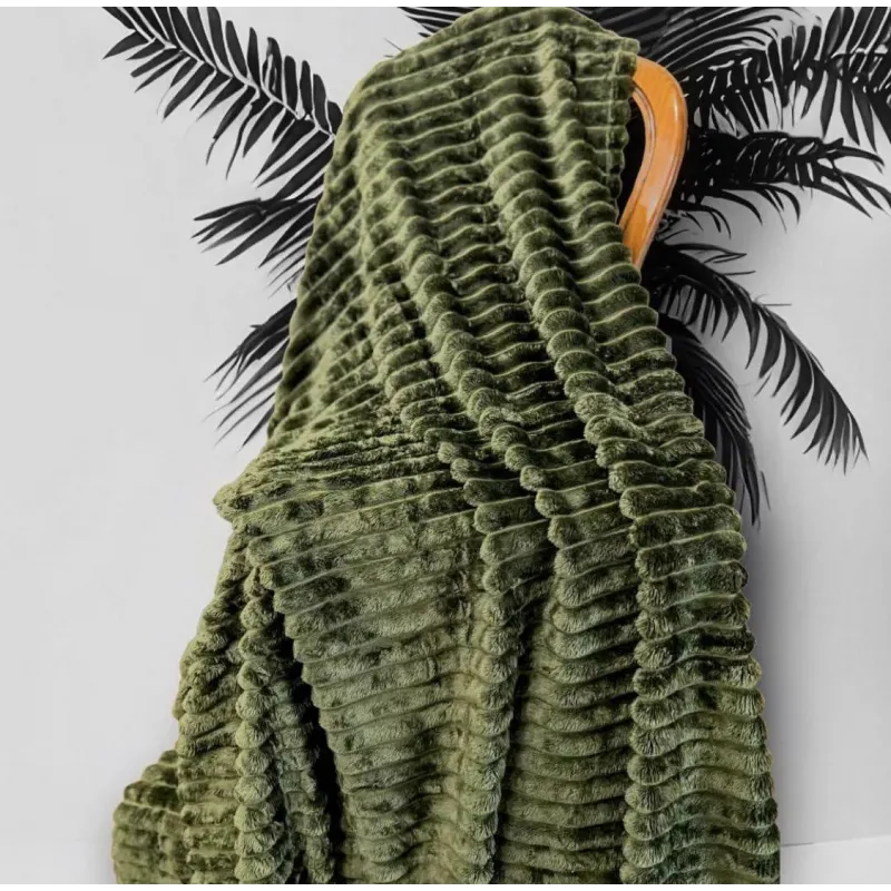 Плед велсофт м'яка полоска Євро Розміру 200-220см колір оливковий