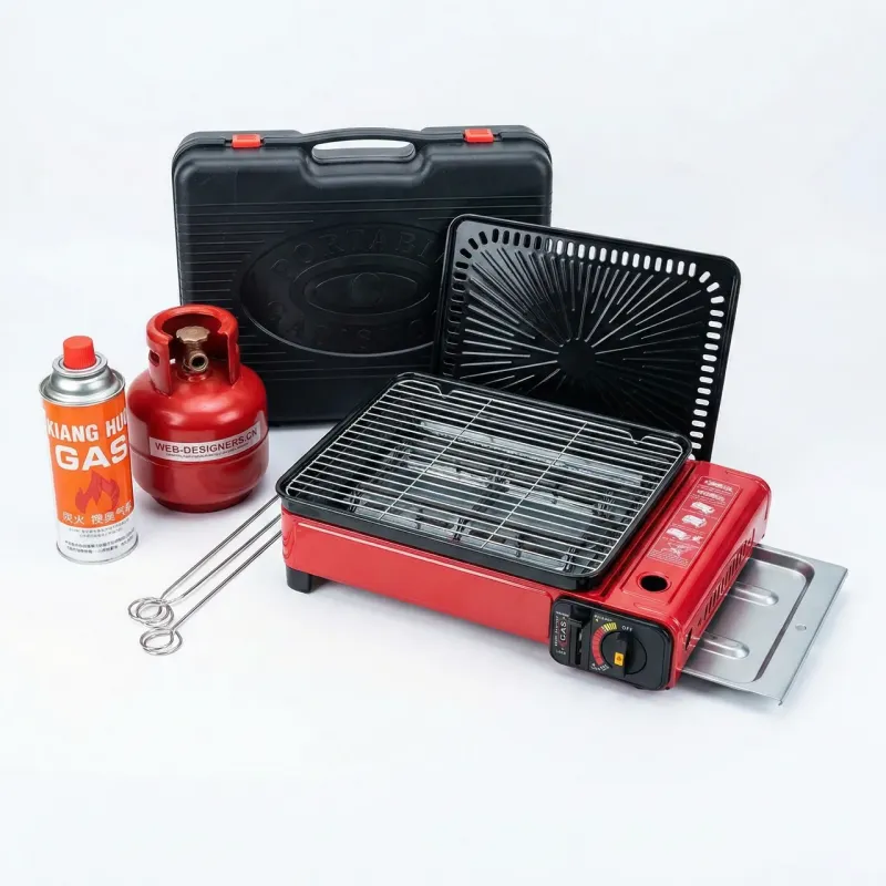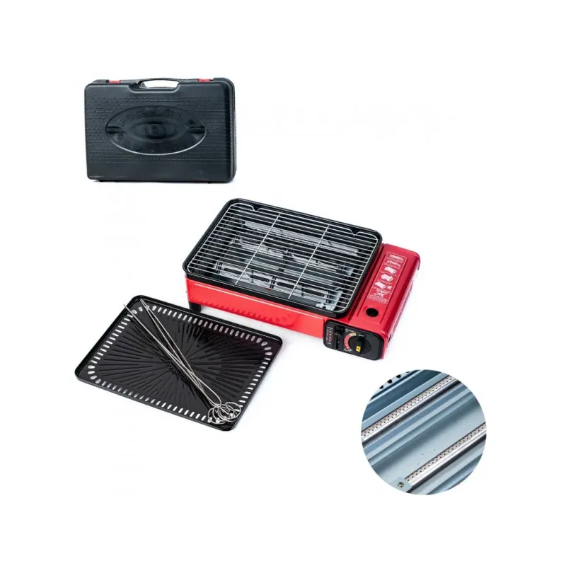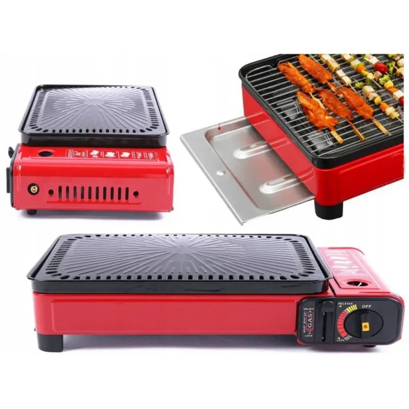 Влаштуйте справжнє барбекю-паті де завгодно за лічені хвилини з новим портативним газовим грилем 2-в-1. Забудьте про брудне вугілля, довгий розпал та їдкий дим. Ця компактна червона плита-гриль дозволяє смажити м'ясо, рибу, овочі та ковбаски з тією ж легкістю, що й на домашній кухні, але з неповторною атмосферою пікніка. Головна особливість моделі — універсальність підключення ("2-в-1"). Гриль оснащений спеціальним перехідником, що дозволяє використовувати його як від компактних цангових картриджів (вставляються в корпус), так і від великих побутових балонів через шланг. Це робить його ідеальним вибором як для піших походів, так і для тривалого кемпінгу чи дачі. Конструкція гриля продумана до дрібниць: U-подібний пальник забезпечує рівномірний прогрів всієї решітки, а спеціальний висувний піддон збирає зайвий жир та соки, роблячи страви кориснішими та полегшуючи миття приладу. У комплекті йде міцний пластиковий кейс для зручного транспортування та зберігання. Характеристики: Тип: Портативний газовий гриль Паливо: Газ (цанговий балон / зовнішній балон LPG) Потужність: ~2.3 кВт Розпал: П'єзопідпал Особливості: Піддон для жиру, U-подібний пальник Комплектація: Гриль, решітка, шампури, кейс Колір: Червоний