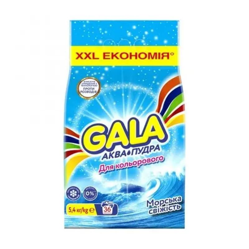 Пральний порошок Gala Аква-Пудра Морська свіжість, автомат, 36 циклів прання, 5.4 кг
