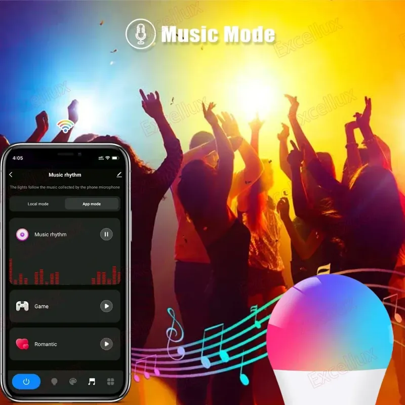 5) Синхронізація музики: яскравість освітлення можна змінювати синхронно з ритмом вашої улюбленої музики, створюючи розслаблюючу та спокійну атмосферу. Перетворіть будь-яку кімнату в танцпол або створіть розслаблену атмосферу. Наприклад, вітальню, кухню, спальню тощо.
