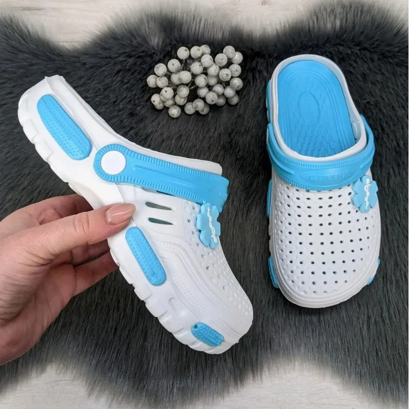 Сабо крокси жіночі піна білі з бірюзою Гіпаніс