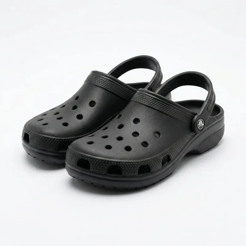 Ці повністю чорні сабо (крокси) — найпрактичніше взуття, яке тільки можна придумати. Завдяки широкій розмірній сітці (від 36 до 46), ця модель підходить як жінкам, так і чоловікам. Виготовлені з якісного матеріалу EVA (пінка), вони легкі, міцні та еластичні. Чорний колір ідеально маскує забруднення, тому ці крокси часто обирають для роботи в саду, на городі, на будівництві або в гаражі. Класична перфорація забезпечує вентиляцію, а фактурна поверхня з боків додає моделі цікавого вигляду. Поворотний ремінець дозволяє миттєво перетворити зручні шльопанці на сандалі з фіксацією п'яти. Характеристики: Тип: Сабо / Крокси. Стать: Унісекс (Family Look). Матеріал: EVA (пінка). Колір: Чорний (Full Black). Розмірний ряд: 36, 37, 38, 39, 40, 41, 42, 43, 44, 45, 46. Особливості: Практичні, немаркі, універсальні.