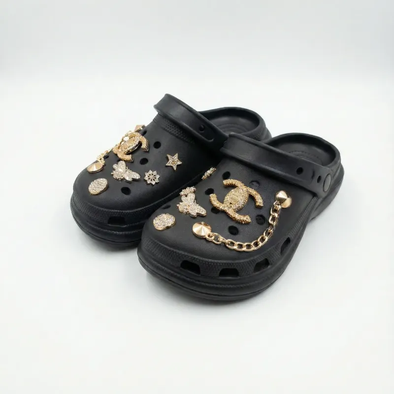 🛒 Шукаєте надійний товар? Ви можете купити Сабо жіночі чорні (р. 36-41) із золотими прикрасами та ланцюжком, модні крокси 37 в нашому інтернет-магазині Shtyrman. Гарантія якості та швидка доставка по всій Україні!