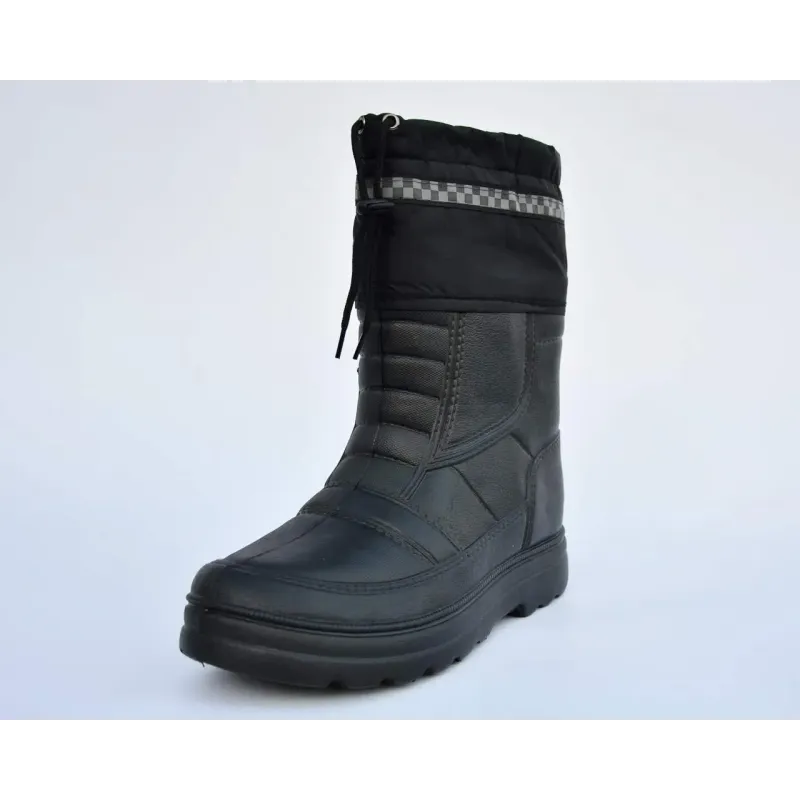 Надійні та легкі чоловічі чоботи з матеріалу ЕВА — універсальне рішення для сльотавої зими, бруду та морозів. Ця модель чудово підійде для роботи на вулиці, риболовлі, полювання або господарських потреб у приватному будинку. Чоботи виготовлені методом суцільного лиття з піни ЕВА, що гарантує 100% захист від промокання. Матеріал має пористу структуру, тому він відмінно утримує тепло і залишається еластичним навіть на морозі. Всередині чоботи оснащені теплим вкладишем (хутряним утеплювачем), який забезпечує комфорт вашим ногам. Верх халяви доповнений водовідштовхувальним манжетом на затяжці зі стильною картатою смужкою. Затяжка дозволяє щільно зафіксувати чобіт на нозі, запобігаючи потраплянню всередину снігу, дощу чи сміття. Характеристики: Сезон: Зима / Холодна осінь Матеріал верху: Піна ЕВА (цільнолита) Утеплювач: Хутряний вкладиш (панчоха) Особливості: Манжет із затяжкою, вологозахист, легка вага Колір: Чорний Країна виробник: Україна Розміри в наявності: 41, 42, 43, 44, 45