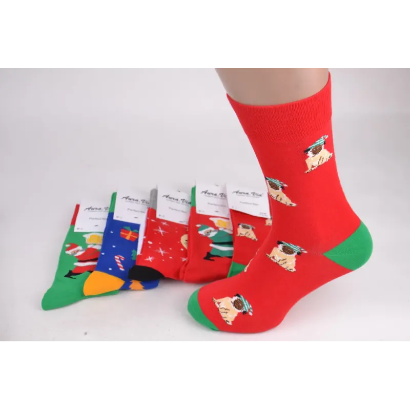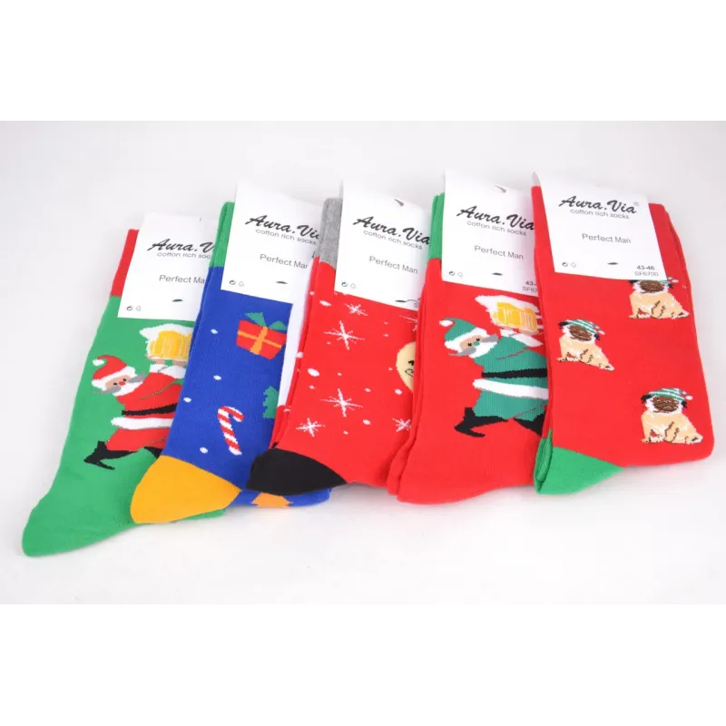 Чоловічі бавовняні шкарпетки з новорічним малюнком торгової марки "AURA", відмінна якість, різні забарвлення і малюнки. Колір ― фото Розмір ― 39-42 Кількість виробів в упаковці ― 5 пар (одного розміру, mix кольорів) Склад ― 85% Cotton, 10% Polyamide, 5% Elasthane Виробництво ― Китай