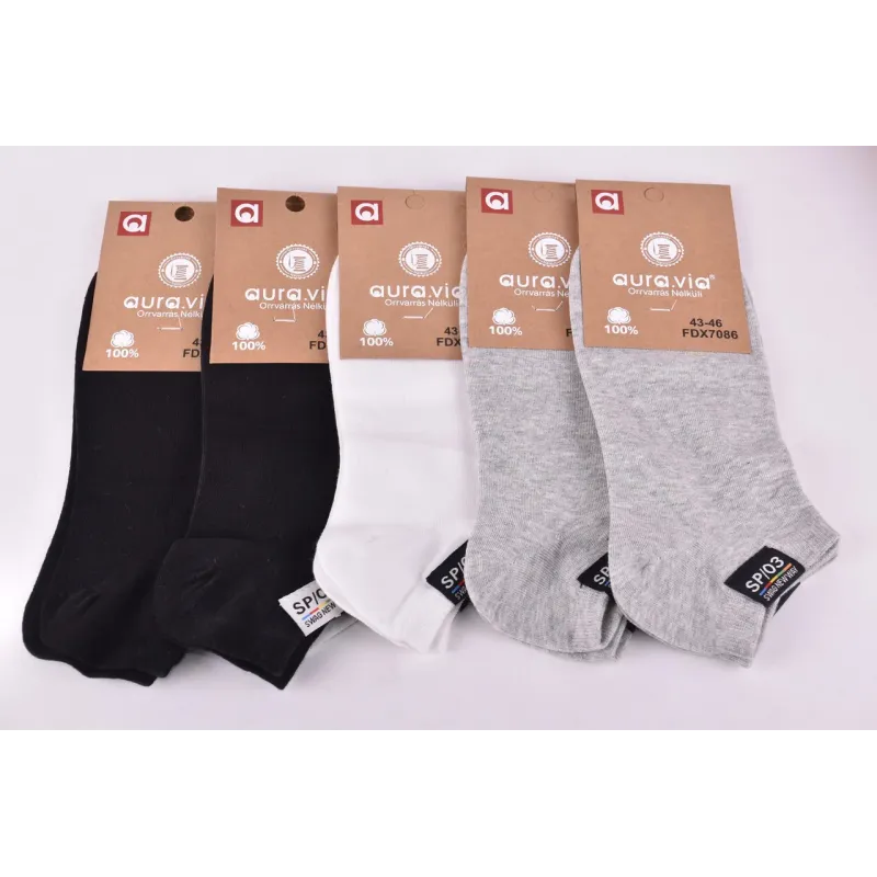 Чоловічі бавовняні, занижені шкарпетки торгової марки "AURA", висока якість, різні забарвлення. Колір ― Як на фото Розмір ― 43-46 Кількість виробів в упаковці ― 5 пар (одного розміру, mix кольорів) Склад ― 85% Cotton, 10% Polyamide, 5% Elasthane Виробництво ― Китай
