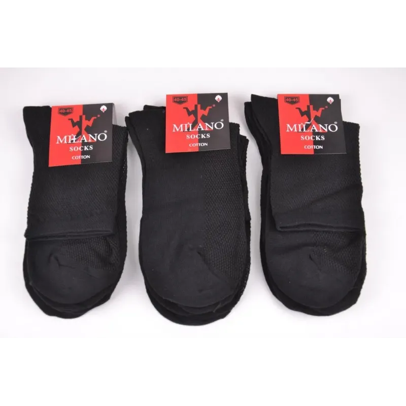 Чоловічі бавовняні шкарпетки з сіткою хорошої якості. Колір ― Як на фото Розмір ― 40-45 Кількість виробів в упаковці ― 12 пар (одного розміру, mix кольорів) Склад ― 100% Cotton Виробництво ― Україна